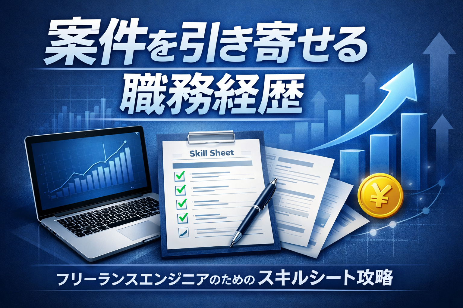 この記事では、あなたのスキルシートを単なるドキュメントから「案件獲得率を劇的に上げる強力なストーリー」に変える具体的な書き方をご紹介します。このコツを掴めば、面談率が上がり、希望単価での成約もグッと近づくはずです。